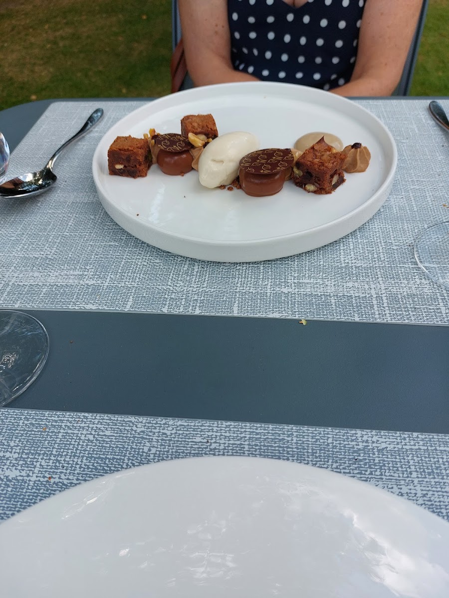 Lamb/palenta and chocolate soufflé were absolutely excellent. Rabbit terrine as a starter was interesting. Pesto risotto needed to be a side, not a main course. A great fine dining experience.