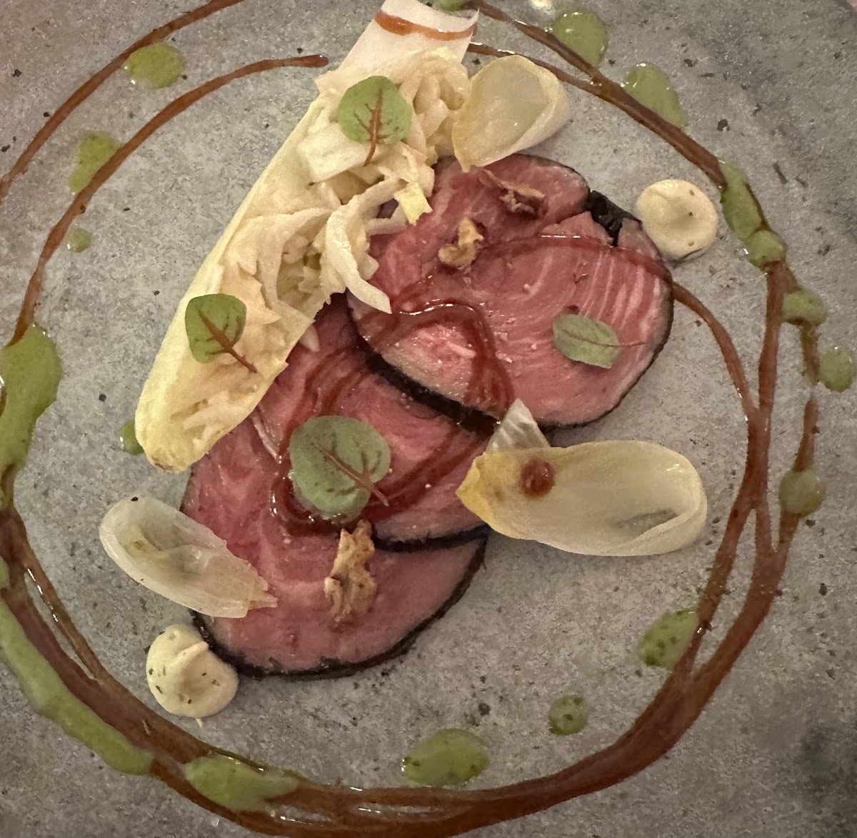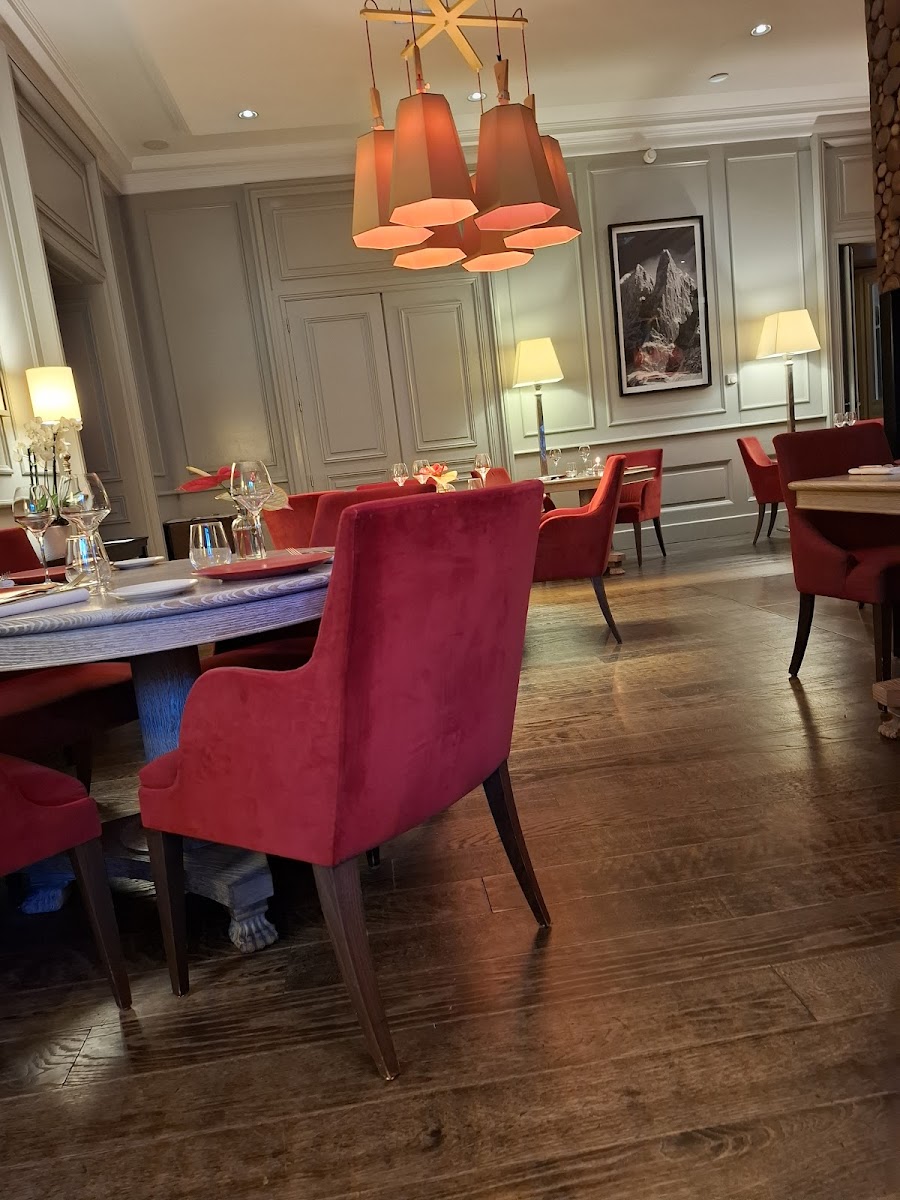 - Very friendly staff, they even got us dropped off at our hotel after our dinner! We really appreciated this, especially given it was Christmas night. - The food is ok. We were hoping for a tasting menu or something a bit more special. It’s à la carte and the flavours weren’t bad but also not remarkable. - We were ready to splurge on a special Christmas dinner, which we didn’t end up doing because the prices were quite reasonable. So the price & quality are a match. - The décor is… :(((. Quelle dommage to take such a gorgeous old building and decorate it with this inexplicable furniture by the beautiful fireplace. Then the fake plastic fireplace and the plastic Orchids, all taking away from the ambiance.